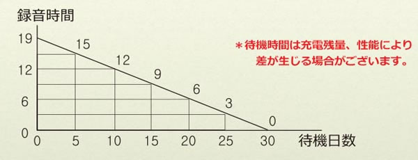 内蔵のリチウムと増量された単4アルカリ乾電池で約72時間(3日間)連続で録音することが可能です。